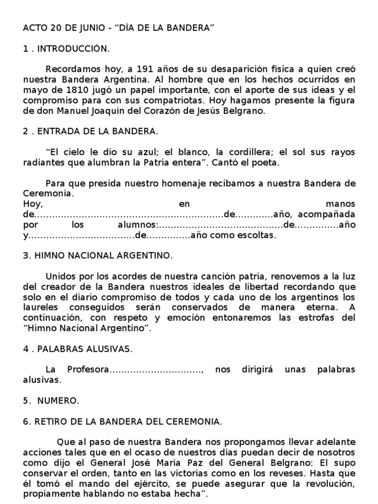 El 20 de junio es el 171.º (centésimo septuagésimo primer) día del año en el calendario gregoriano y el 172.º en los años bisiestos. Glosa dia de los jardines glosas dia de los jardines introduccion: Recordamos hoy, a 191 años de su desaparición física a quien creó nuestra bandera argentina. Debido a una crisis política imperante el 8 de junio de 1838, durante la presidencia de roberto maría ortíz y mediante la ley 12.361 se estableció el día 20 de junio como día de la bandera. El día de la bandera se conmemora cada año en argentina el 20 de junio. En el imperio romano de occidente, en el norte de la actual francia. El triunvirato amonesta a belgrano. Haber fijado el día de la bandera el 20 de junio, aniversario de la muerte de su creador, es un homenaje, pero también, una forma de evitar tan engorrosa historia. Luego del glorioso mayo de 1810 los conflictos entre patriotas independentistas y aquellos que aún apoyaban a los realistas se libraban en diversos frentes de américa, tanto externos como internos. Admin 20 junio, 2020 20 de junio argentina dia de la bandera manuel belgrano. Esta fecha es feriado nacional y día festivo dedicado a la bandera argentina y a la conmemoración de su creador, manuel belgrano, fallecido en ese día de 1820. 20 de junio da de la bandera saludo: Esa fecha es feriado nacional y día festivo dedicado a la la bandera fue creada el 27 de febrero de 1812, durante la gesta por la independencia de las provincias unidas del río de la plata.
