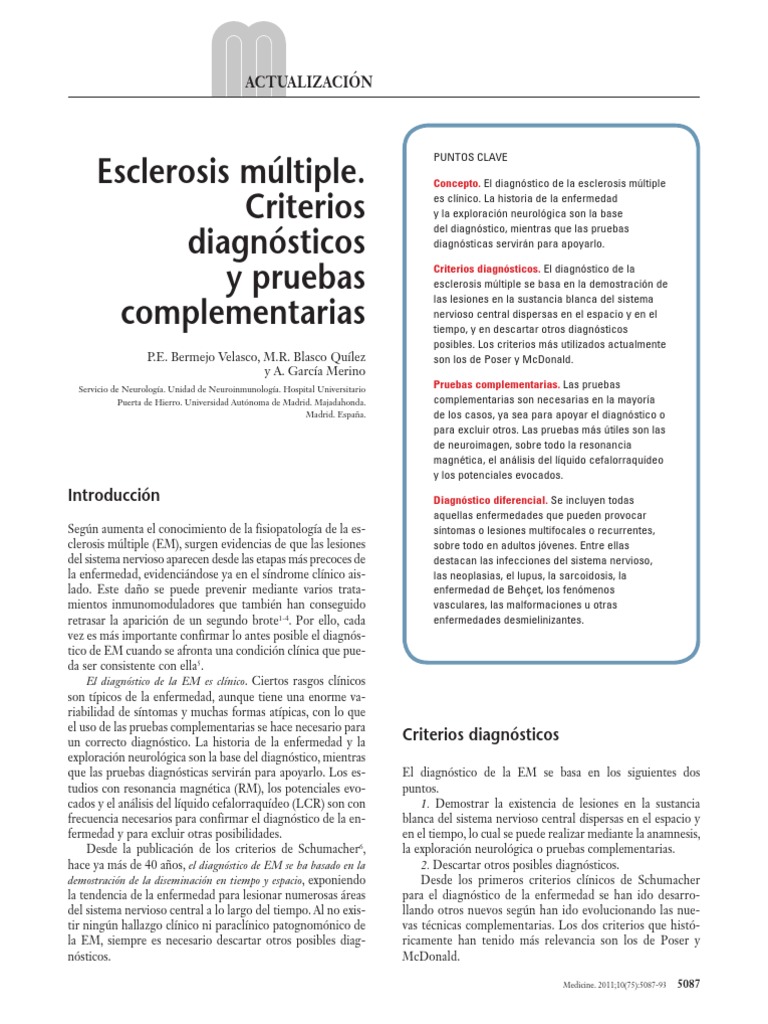 Esclerose Multipla Criterios De Mcdonald : Guia De Practica Clinica Para El Diagnostico Y Tratamiento De Esclerosis Multiple En Adultos : El panel internacional para el diagnóstico de la esclerosis múltiple, estableció las últimas revisiones a los criterios diagnósticos de mcdonald en 2017, estos criterios se basan en el número de brotes y la evidencia objetiva de daño neurológico mediante signos clínicos así como en dos pilares fundamentales que son la demostración de.. El panel internacional para el diagnóstico de la esclerosis múltiple, estableció las últimas revisiones a los criterios diagnósticos de mcdonald en 2017, estos criterios se basan en el número de brotes y la evidencia objetiva de daño neurológico mediante signos clínicos así como en dos pilares fundamentales que son la demostración de.